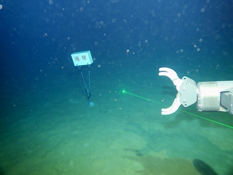 8月23日,“海琴”號在4140米深海底放置標識。