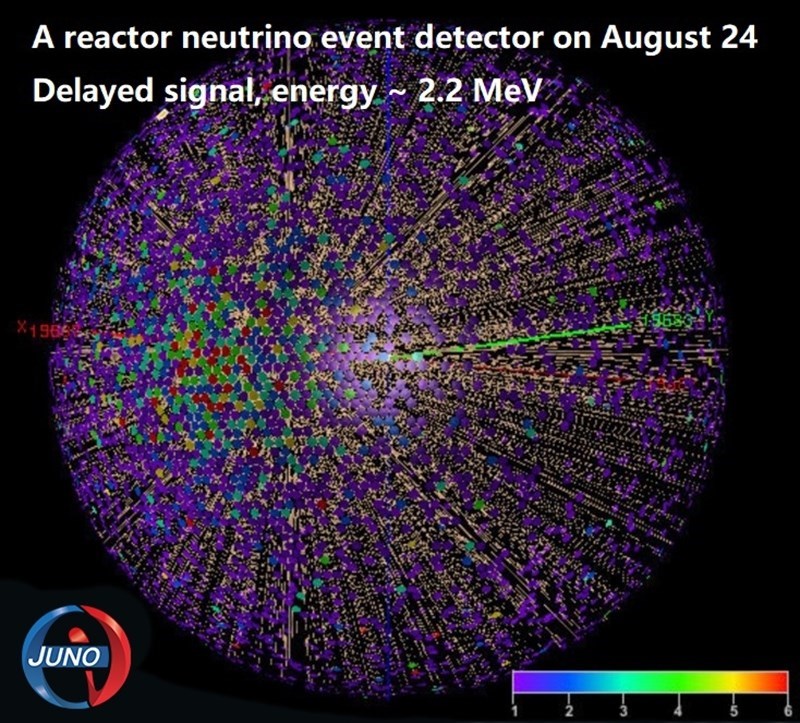 這是8月24日江門中微子實(shí)驗探測到的一個反應(yīng)堆中微子事例示意圖。