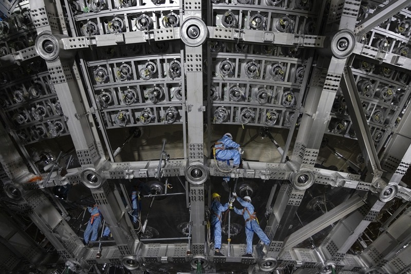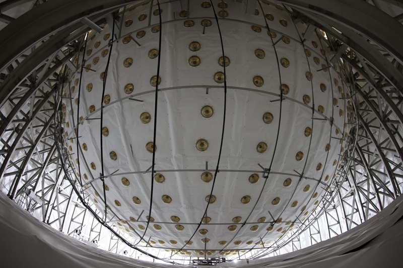 從江門中微子實(shí)驗球底拍攝的中心探測器有機(jī)玻璃球(2024年11月22日攝)。