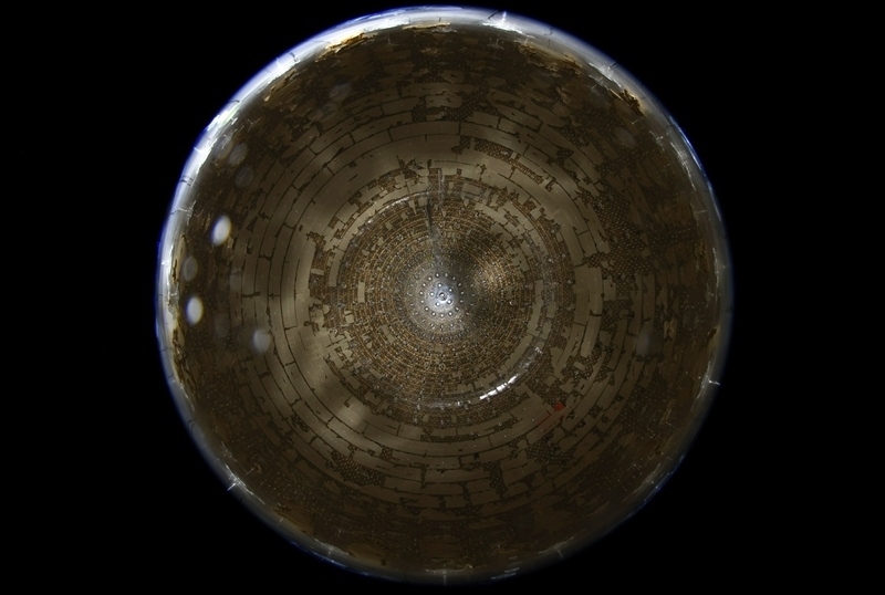 在江門中微子實(shí)驗中心探測器有機(jī)玻璃球頂部拍攝的光電倍增管(2024年12月17日攝)。