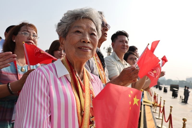 9月3日,紀(jì)念中國(guó)人民抗日戰(zhàn)爭(zhēng)暨世界反法西斯戰(zhàn)爭(zhēng)勝利80周年大會(huì)在北京隆重舉行。這是來自香港的抗戰(zhàn)老兵林珍(前)。