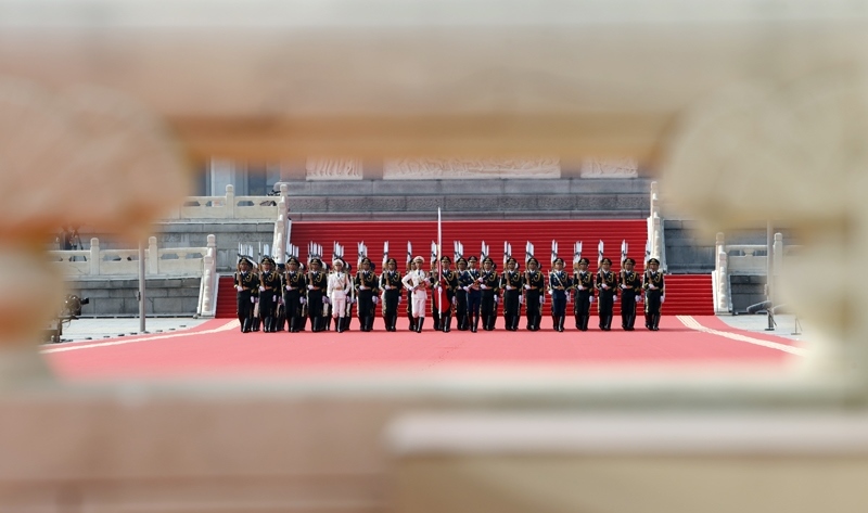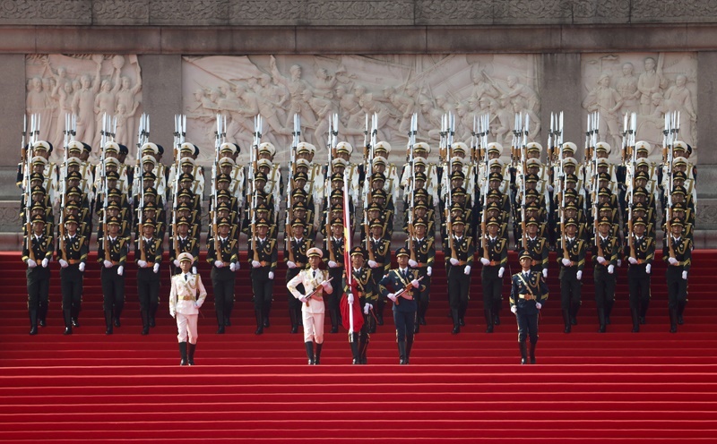 9月3日,紀(jì)念中國(guó)人民抗日戰(zhàn)爭(zhēng)暨世界反法西斯戰(zhàn)爭(zhēng)勝利80周年大會(huì)在北京隆重舉行。這是國(guó)旗護(hù)衛(wèi)隊(duì)官兵護(hù)衛(wèi)著五星紅旗,從人民英雄紀(jì)念碑行進(jìn)至廣場(chǎng)北側(cè)升旗區(qū)。