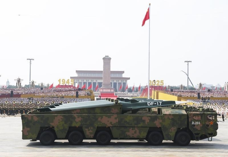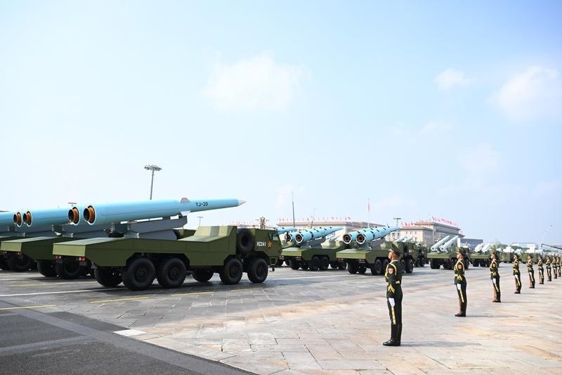 9月3日,紀(jì)念中國(guó)人民抗日戰(zhàn)爭(zhēng)暨世界反法西斯戰(zhàn)爭(zhēng)勝利80周年大會(huì)在北京隆重舉行。這是高超聲速導(dǎo)彈方隊(duì)接受檢閱。