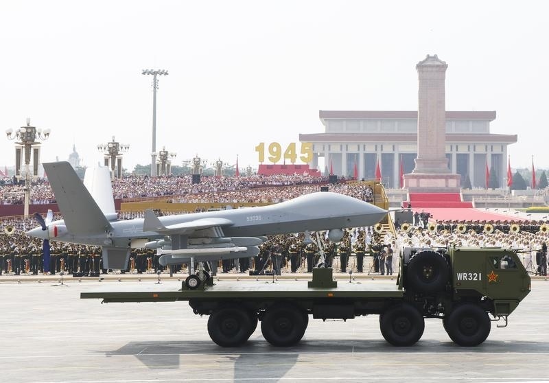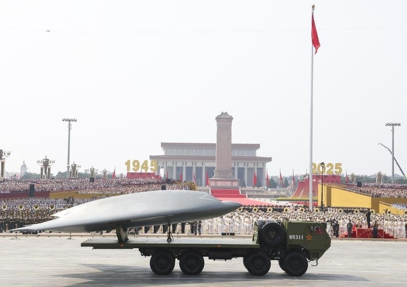 9月3日,紀(jì)念中國(guó)人民抗日戰(zhàn)爭(zhēng)暨世界反法西斯戰(zhàn)爭(zhēng)勝利80周年大會(huì)在北京隆重舉行。這是空中無(wú)人作戰(zhàn)方隊(duì)接受檢閱。