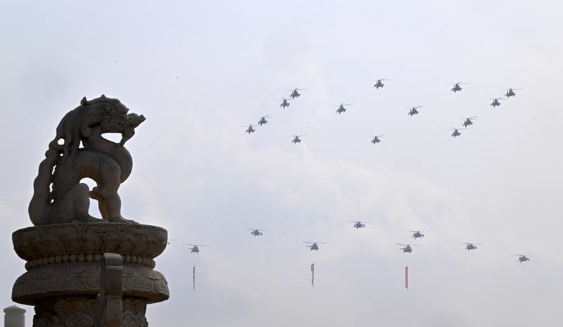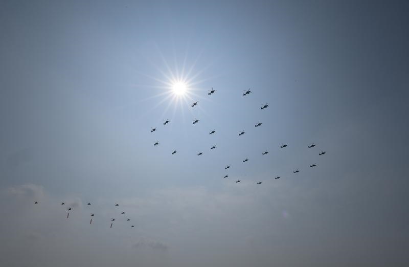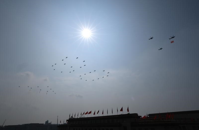 9月3日,紀(jì)念中國(guó)人民抗日戰(zhàn)爭(zhēng)暨世界反法西斯戰(zhàn)爭(zhēng)勝利80周年大會(huì)在北京隆重舉行。這是教練機(jī)梯隊(duì)接受檢閱。