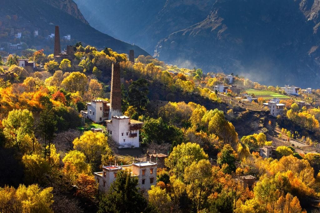基卡依村地處藏羌彝文化走廊核心地區(qū),位于嘉絨文化、康巴文化生態(tài)保護實驗區(qū)范圍內。保存完好的22座古碉樓與藏式民居,凝結多民族智慧,成就“云端藏寨”。