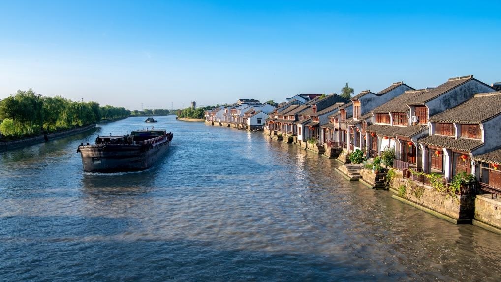 世界文化遺產(chǎn)大運河流經(jīng)荻港村,造就了村中小橋流水的江南景致。這里的?;~塘系統(tǒng),被聯(lián)合國教科文組織譽為“良性循環(huán)典范”,構建了桑魚共生的特色景觀。