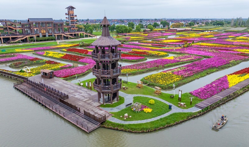 10月18日,游客在江蘇省興化市千垛景區(qū)賞花游玩。