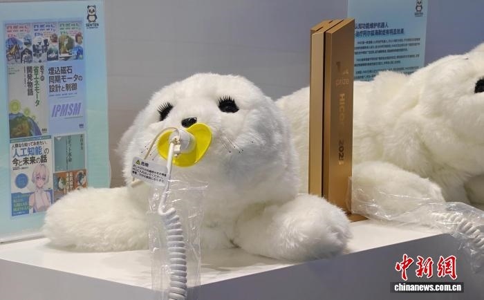 圖為北京千展新世代智能機(jī)器人科技有限公司展臺(tái)上展出的認(rèn)知功能維護(hù)機(jī)器人。(中新網(wǎng)記者韓輝 攝)