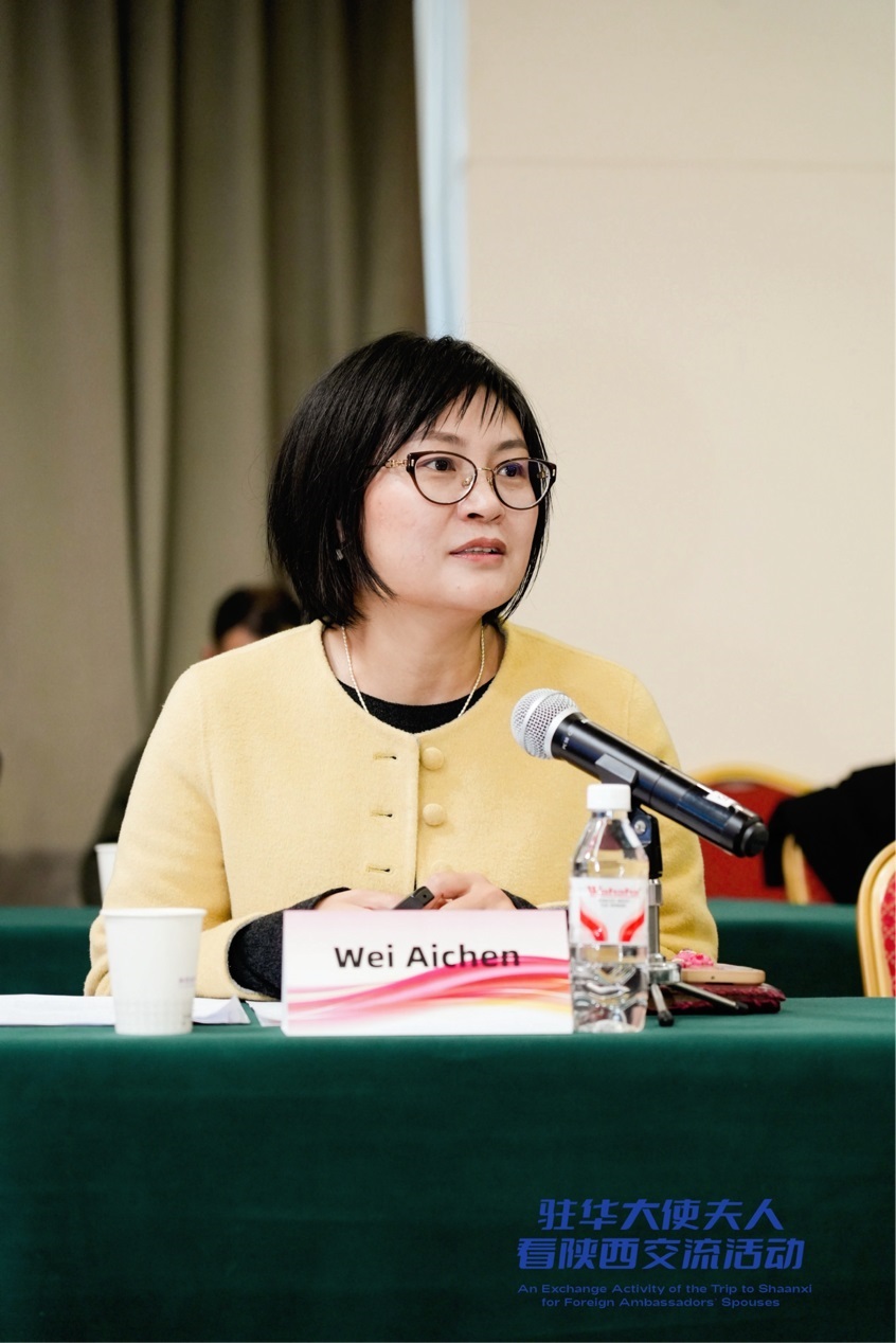 王玉娥的分享為駐華大使夫人打開了陜西婦女事業(yè)的“全景圖”,女性代表、西安宏源視訊設(shè)備有限責任公司CEO黃姍姍,“愛心媽媽”代表、西安市蓮湖區(qū)艾樂生社會工作服務(wù)中心主任韋艾辰的發(fā)言,則是這幅圖景中最鮮活的“特寫鏡頭”。