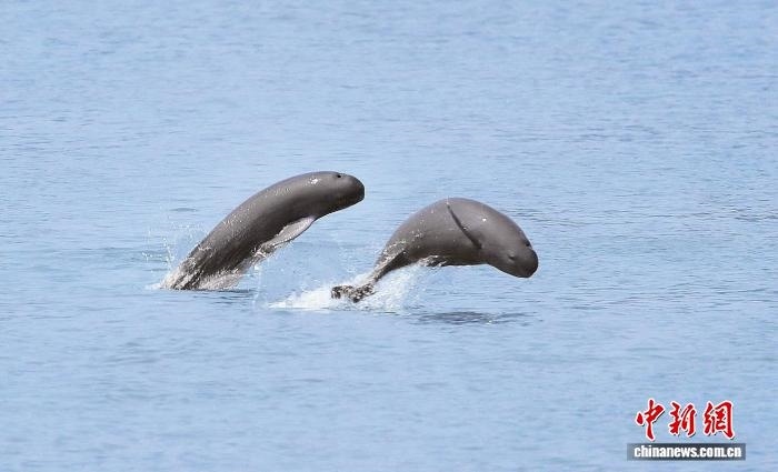 2020年8月,江豚在江西南昌東湖區(qū)揚子洲鎮(zhèn)漁業(yè)村的“江豚灣”逐浪嬉戲。(資料圖)余會功 攝