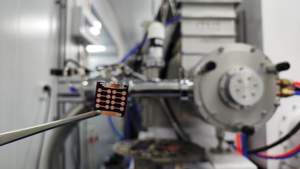 這是南京大學等單位研制的光電轉化效率30.1%全鈣鈦礦疊層光伏電池。(受訪者供圖)