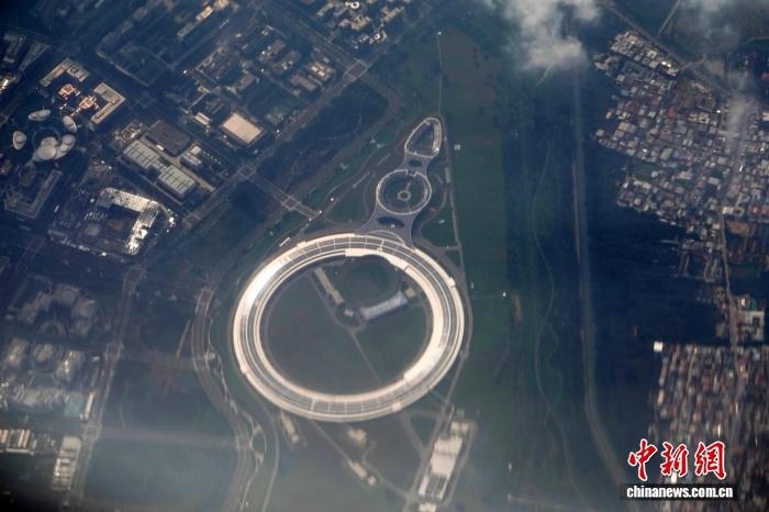 2025年8月30日,客機飛過北京懷柔科學(xué)城時,航拍高能同步輻射光源(HEPS)大科學(xué)裝置。中新網(wǎng)記者 孫自法 攝