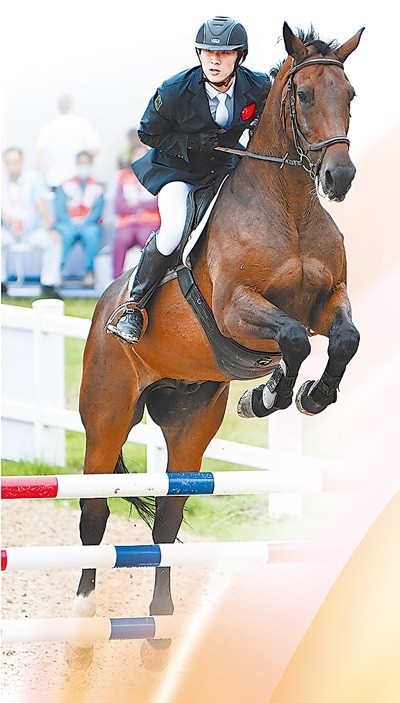 9月21日,湖北隊(duì)選手陳柏良在第十五屆全國(guó)運(yùn)動(dòng)會(huì)現(xiàn)代五項(xiàng)馬術(shù)比賽中。