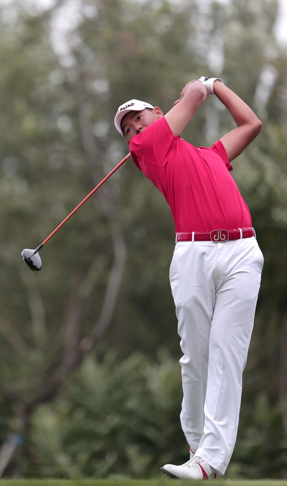 2013年9月9日,香港隊(duì)選手黑純一在比賽中。當(dāng)日,在遼寧省沈陽市進(jìn)行的第十二屆全運(yùn)會(huì)高爾夫球男子團(tuán)體比賽中,香港隊(duì)最終以851桿的總成績奪得亞軍。新華社記者姚劍鋒攝