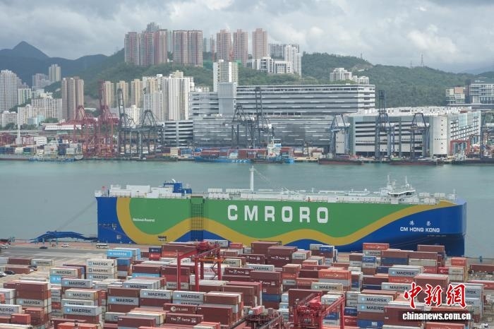 2025年9月28日,全球首艘9300CEU(標(biāo)準(zhǔn)車位)甲醇雙燃料動力滾裝船“港榮”輪(“CM HONG KONG”輪)首航香港儀式在香港舉行。圖為“港榮”輪。(資料圖) 中新網(wǎng)記者 陳永諾 攝