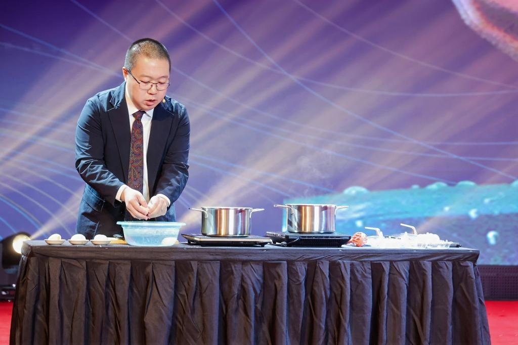 11月22日拍攝的為觀眾展示煮雞蛋和蒸雞蛋化學(xué)原理的實(shí)驗(yàn)。新華社發(fā)