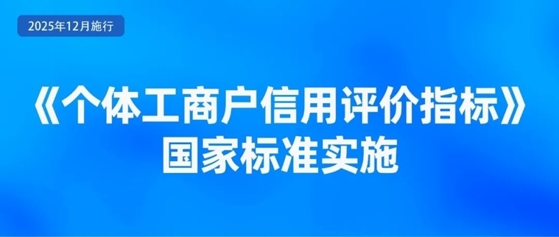 市場監(jiān)管總局組織制定發(fā)布《個體工商戶信用評價指標》(GB/T 46278—2025)國家標準,于12月1日正式實施。開展個體工商戶信用評價,旨在發(fā)揮信用價值,助力金融機構開發(fā)和提供適合個體工商戶發(fā)展特點的金融產品和服務,擴大個體工商戶貸款規(guī)模和覆蓋面,提高貸款精準性和便利度。同時也將為實施分型分類精準幫扶,加大“個轉企”探索力度,鼓勵、支持、引導個體工商戶持續(xù)健康發(fā)展提供標準化支撐。