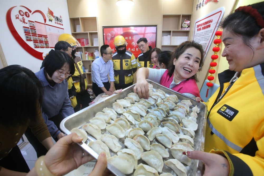 天津工會(huì)組織舉辦新就業(yè)形態(tài)勞動(dòng)者慰問(wèn)活動(dòng)。新華社發(fā)