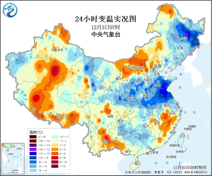 中國網12月3日訊 據中央氣象臺消息,隨著寒潮主體進一步東移南下,過去一天我國中東部地區(qū)氣溫持續(xù)下跌。最新氣象監(jiān)測顯示,3日早晨,山東、河南、江蘇、安徽一帶氣溫下降幅度達到4~8℃,局地降幅超過10℃,最低氣溫0℃線位于蘇皖北部、河南南部至陜西南部等地。