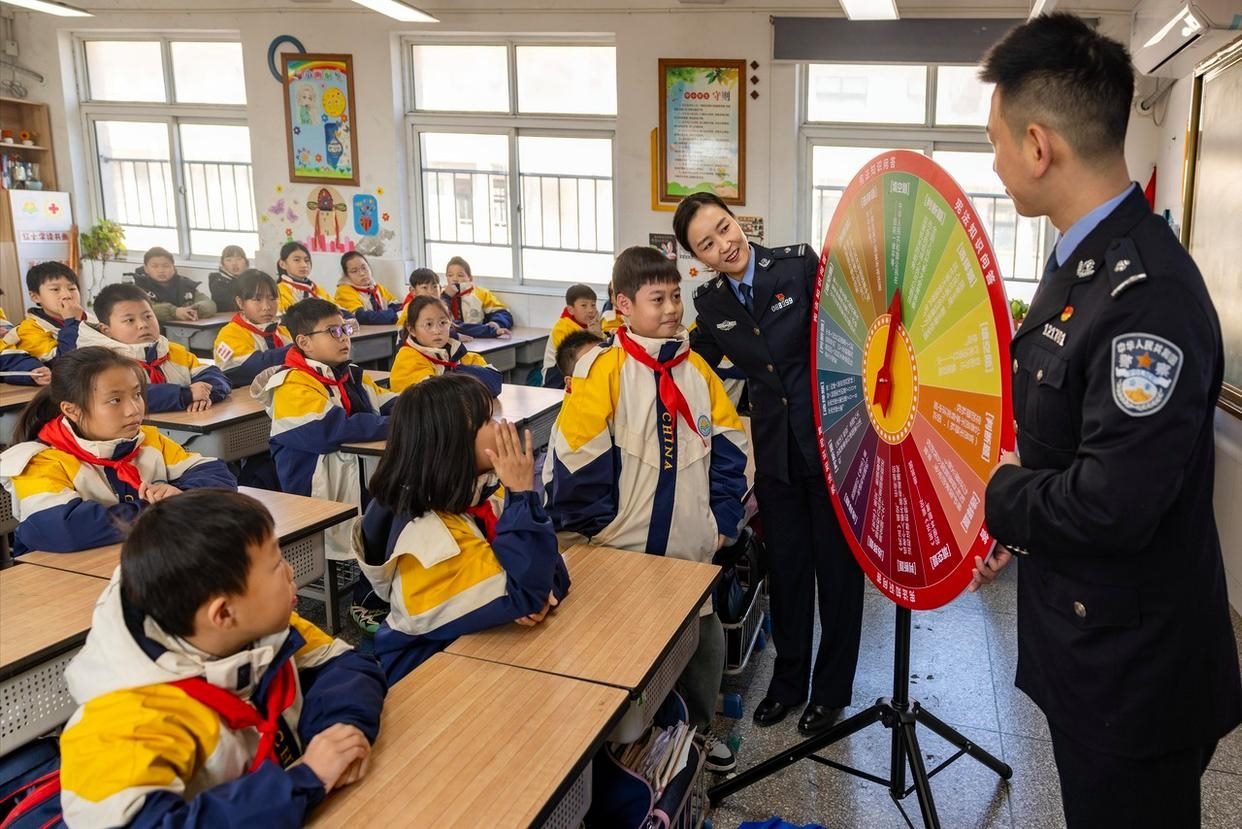12月2日,安徽省舒城縣公安局網(wǎng)監(jiān)大隊(duì)聯(lián)合五顯派出所走進(jìn)五顯鎮(zhèn)中心學(xué)校課堂,為同學(xué)們帶來了一堂沉浸式、互動(dòng)式的法治教育課。(工人日?qǐng)?bào)通訊員 王可海 攝)