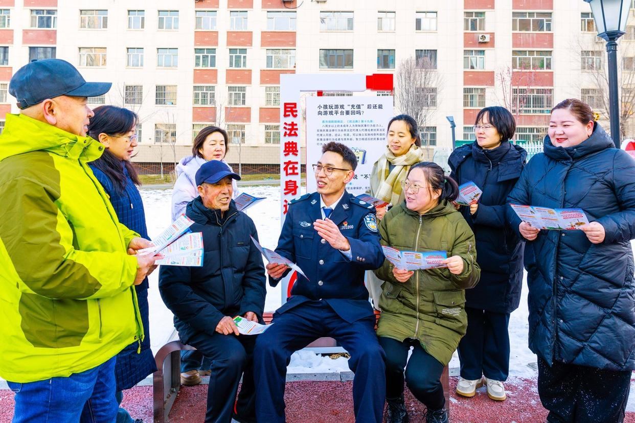 12月2日,新疆烏魯木齊市天山區(qū)幸福路街道天福花園社區(qū)組織黨員和志愿者上門為商戶和居民宣講憲法知識(shí)、發(fā)放憲法知識(shí)手冊(cè)、提供法律咨詢等多種形式,推動(dòng)憲法宣傳教育深入人心。(工人日?qǐng)?bào)通訊員 孫振嵩 攝)