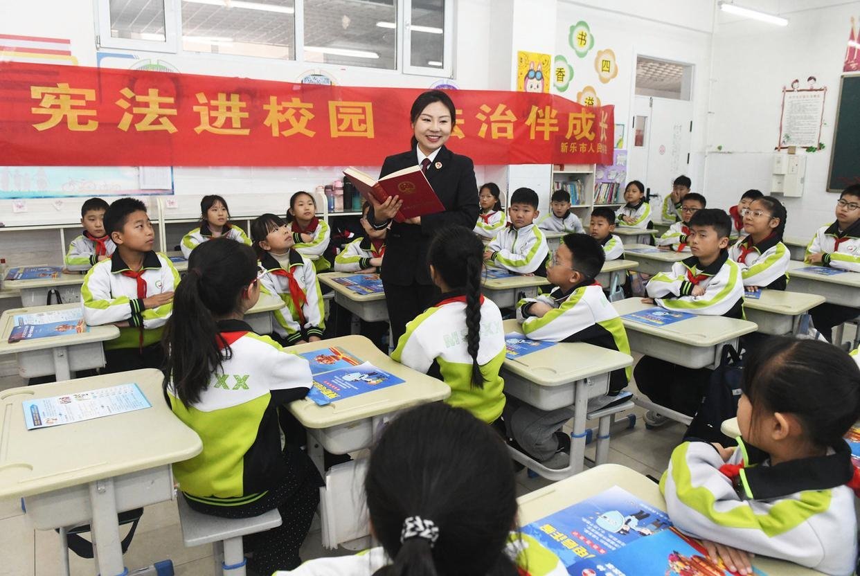 12月4日,在河北省石家莊市欒城區(qū)凌空橋路小學(xué),欒城區(qū)法院的工作人員為學(xué)生們普及憲法知識(shí)。(工人日?qǐng)?bào)通訊員 李明發(fā) 攝)