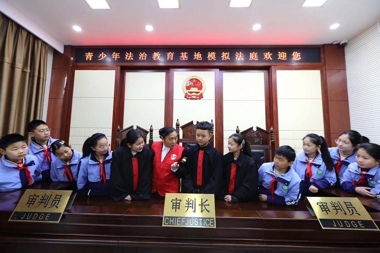 12月2日,孩子們?cè)趯W(xué)習(xí)憲法知識(shí)、體驗(yàn)“模擬法庭”,“沉浸式”感知法律的神圣與威嚴(yán),在潛移默化中接受法治教育,爭做一個(gè)學(xué)法、懂法、守法的新時(shí)代好公民。(工人日?qǐng)?bào)通訊員 李海濤 攝)