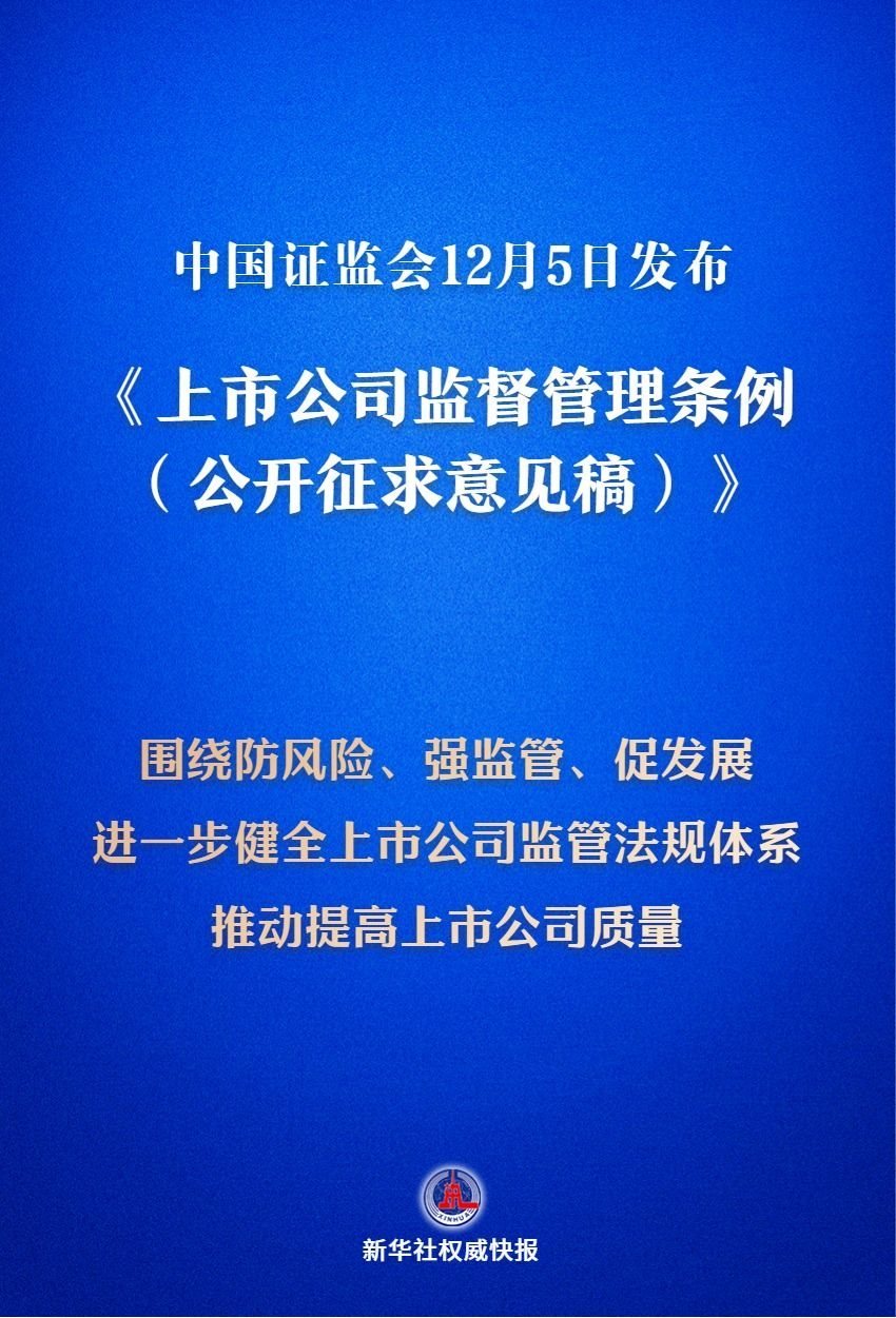 12月5日,中國(guó)證監(jiān)會(huì)發(fā)布《上市公司監(jiān)督管理?xiàng)l例(公開征求意見稿)》,這意味著我國(guó)將迎來首部專門的上市公司監(jiān)管行政法規(guī)。