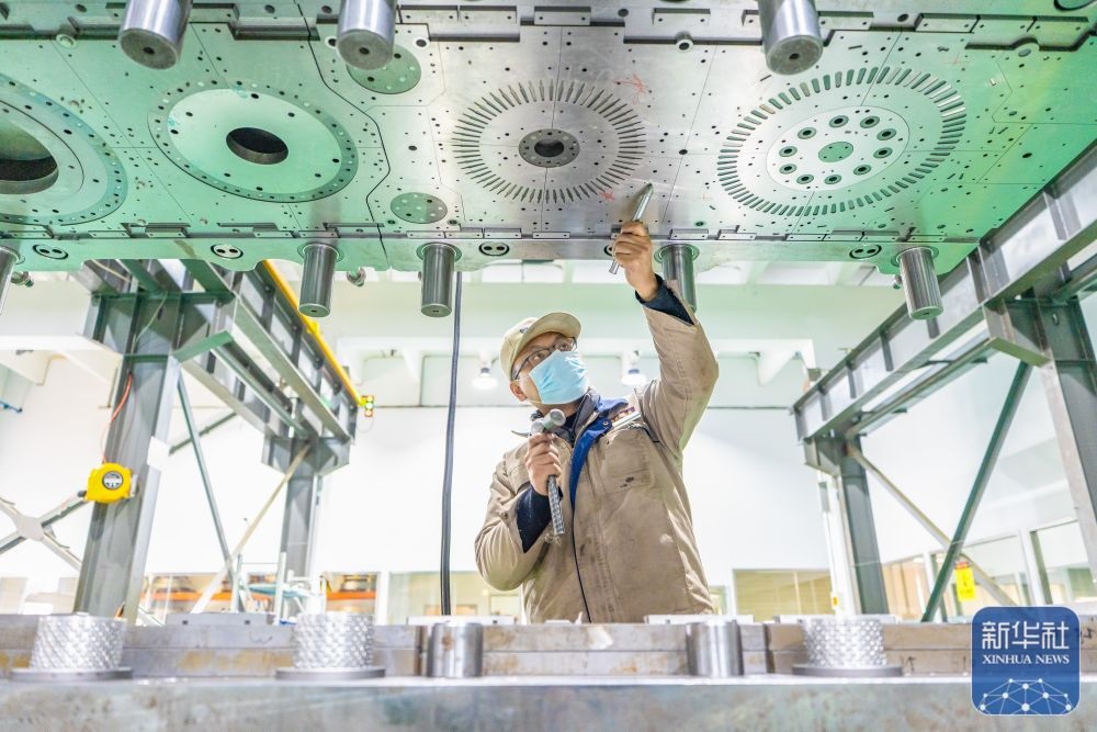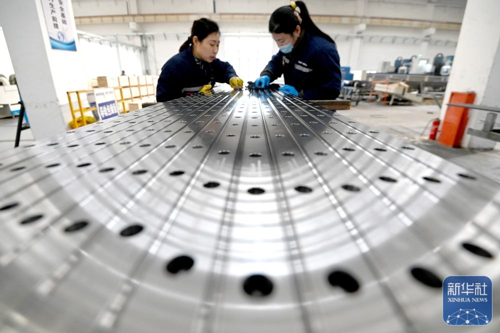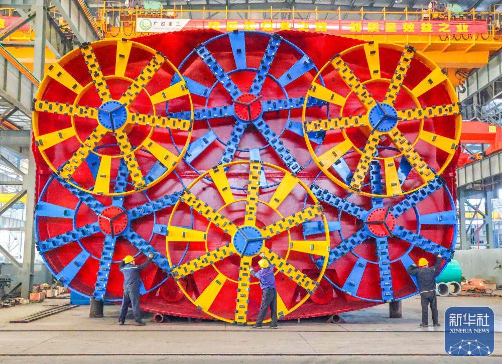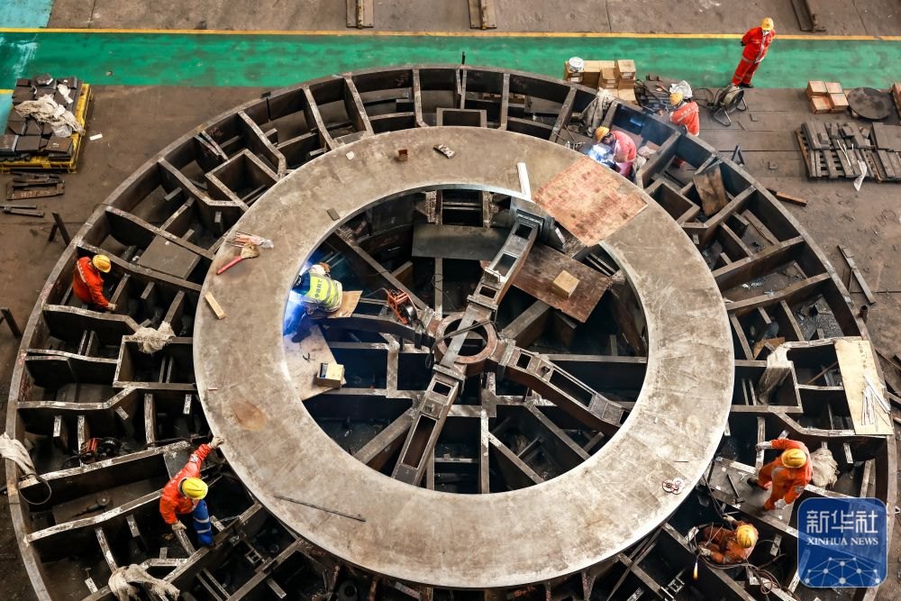 ↑ 12月15日,中鐵科工集團(tuán)武漢江夏制造基地技術(shù)工人對盾構(gòu)機(jī)配件進(jìn)行裝配作業(yè)。新華社發(fā)(趙軍攝)