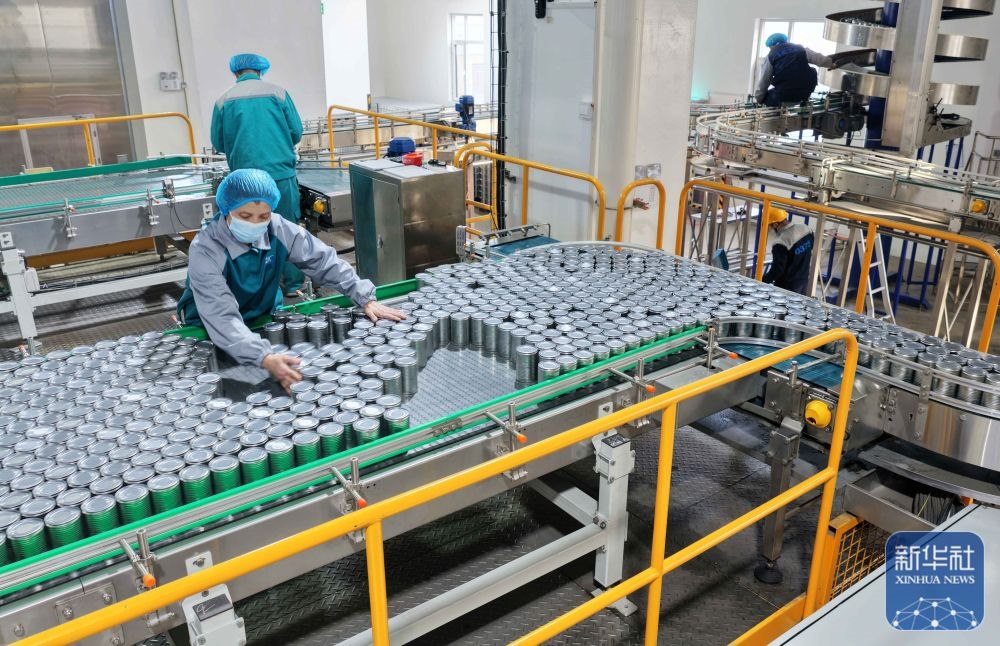 ↑ 12月15日,工人在山東省臨沂市沂南縣銅井鎮(zhèn)寵物食品產(chǎn)業(yè)園寵物食品生產(chǎn)線忙碌。新華社發(fā)(王彥冰攝)