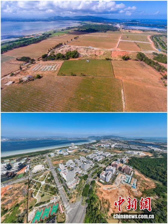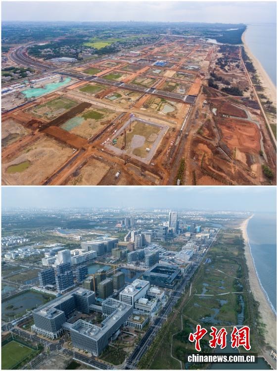 2025年12月18日,海南自由貿(mào)易港正式啟動(dòng)全島封關(guān)。近年來(lái),海南自貿(mào)港建設(shè)在利好政策帶動(dòng)下不斷刷新“自貿(mào)港速度”,一個(gè)個(gè)重大項(xiàng)目、重點(diǎn)園區(qū)拔地而起,直觀呈現(xiàn)海南自貿(mào)港的蓬勃生機(jī)。這里正成為中國(guó)對(duì)外開(kāi)放的新前沿、互利合作的新熱土和推動(dòng)經(jīng)濟(jì)全球化的新引擎。上資料圖為2020年8月19日俯瞰三亞崖州灣科技城高新區(qū)建設(shè)現(xiàn)場(chǎng),下資料圖為2025年12月9日已初具規(guī)模的三亞崖州灣科技城高新區(qū)。(拼版圖,無(wú)人機(jī)照片)