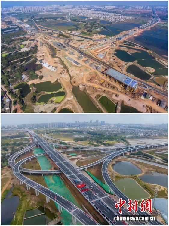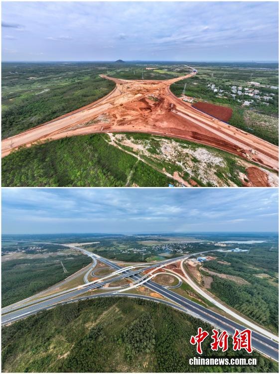 2025年12月18日,海南自由貿(mào)易港正式啟動(dòng)全島封關(guān)。近年來(lái),海南自貿(mào)港建設(shè)在利好政策帶動(dòng)下不斷刷新“自貿(mào)港速度”,一個(gè)個(gè)重大項(xiàng)目、重點(diǎn)園區(qū)拔地而起,直觀呈現(xiàn)海南自貿(mào)港的蓬勃生機(jī)。這里正成為中國(guó)對(duì)外開(kāi)放的新前沿、互利合作的新熱土和推動(dòng)經(jīng)濟(jì)全球化的新引擎。上資料圖為2021年2月6日正在建設(shè)中的G15沈海高速公路??诙雾?xiàng)目海秀互通,下資料圖為2022年12月28日G15沈海高速公路??诙谓ǔ赏ㄜ?chē)。(拼版圖,無(wú)人機(jī)照片)