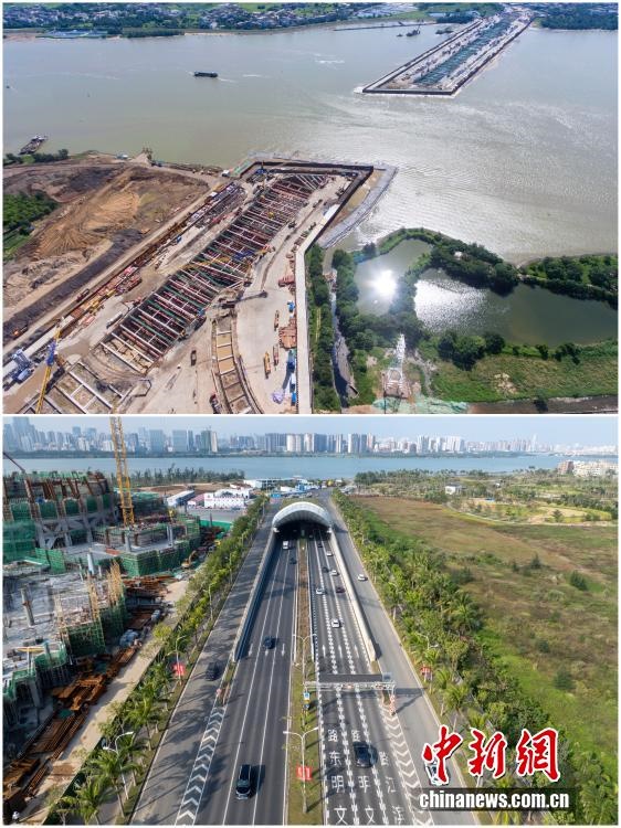 2025年12月18日,海南自由貿(mào)易港正式啟動(dòng)全島封關(guān)。近年來(lái),海南自貿(mào)港建設(shè)在利好政策帶動(dòng)下不斷刷新“自貿(mào)港速度”,一個(gè)個(gè)重大項(xiàng)目、重點(diǎn)園區(qū)拔地而起,直觀呈現(xiàn)海南自貿(mào)港的蓬勃生機(jī)。這里正成為中國(guó)對(duì)外開(kāi)放的新前沿、互利合作的新熱土和推動(dòng)經(jīng)濟(jì)全球化的新引擎。上資料圖為2019年6月19日的??谖拿鳀|越江隧道施工現(xiàn)場(chǎng),下資料圖為2025年12月7日已建成通車(chē)的海南省首條跨越南渡江隧道——文明東隧道。(拼版圖,無(wú)人機(jī)照片)