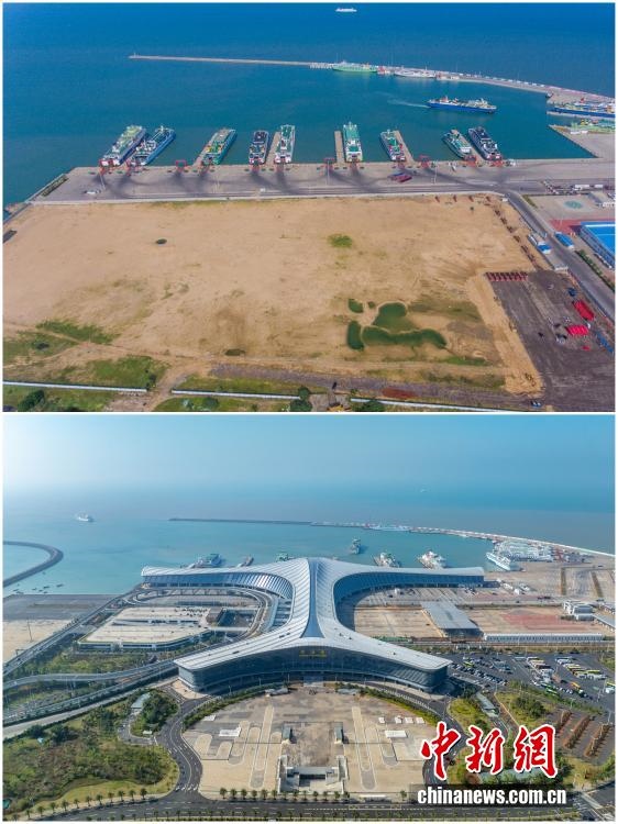 2025年12月18日,海南自由貿(mào)易港正式啟動(dòng)全島封關(guān)。近年來(lái),海南自貿(mào)港建設(shè)在利好政策帶動(dòng)下不斷刷新“自貿(mào)港速度”,一個(gè)個(gè)重大項(xiàng)目、重點(diǎn)園區(qū)拔地而起,直觀呈現(xiàn)海南自貿(mào)港的蓬勃生機(jī)。這里正成為中國(guó)對(duì)外開(kāi)放的新前沿、互利合作的新熱土和推動(dòng)經(jīng)濟(jì)全球化的新引擎。上資料圖為2018年9月29日的海口新海滾裝碼頭客運(yùn)綜合樞紐站項(xiàng)目建設(shè)地塊,下資料圖為2025年12月5日已投入使用的海口新海滾裝碼頭客運(yùn)綜合樞紐站。(拼版圖,無(wú)人機(jī)照片)