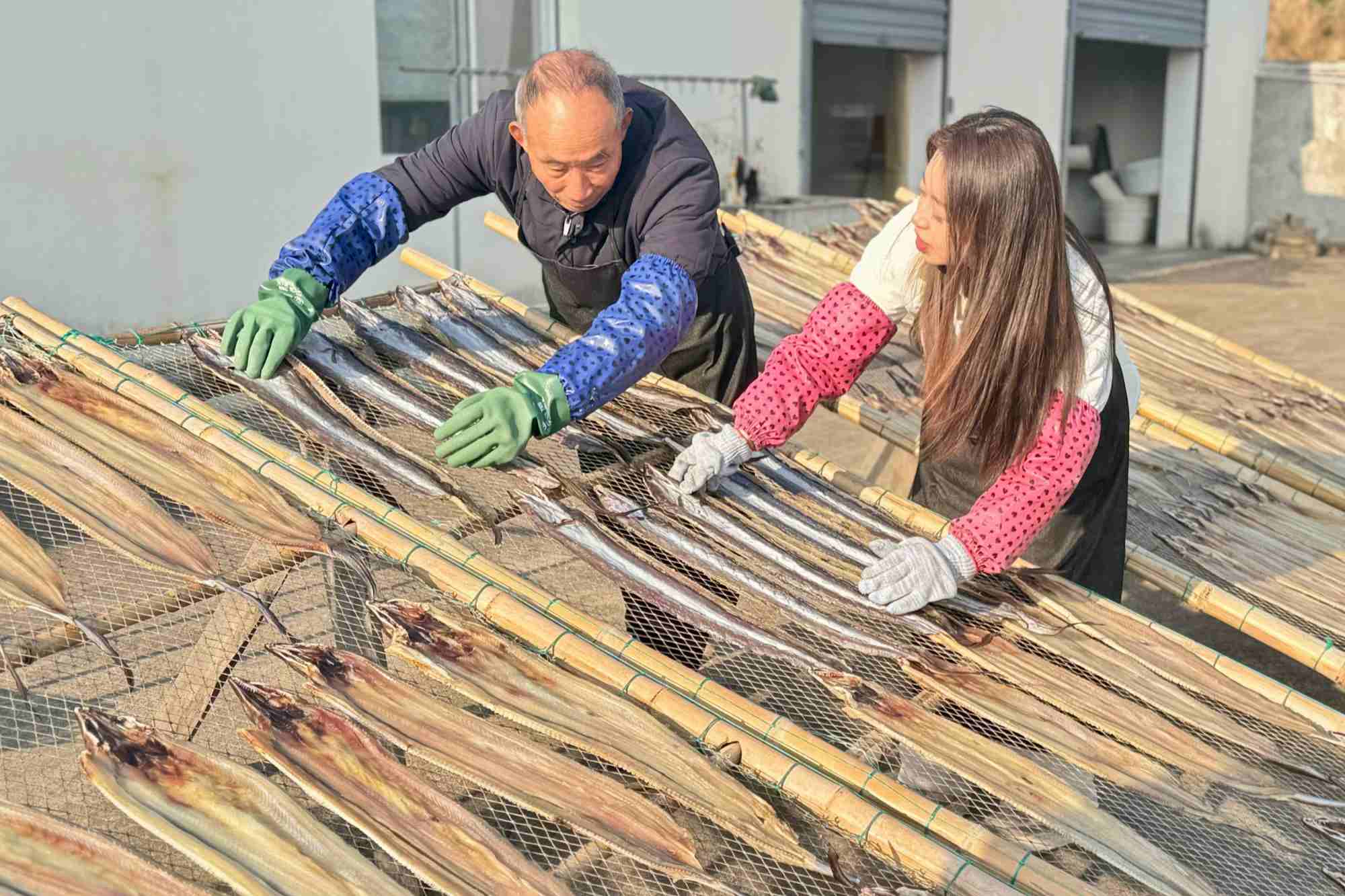 該廠生產(chǎn)的鰻魚(yú)、馬鮫魚(yú)、魷魚(yú)、黃魚(yú)、蝦等鲞類產(chǎn)品,在北京、上海、南京等城市供不應(yīng)求,年銷售額超過(guò)500萬(wàn)元。以前靠鹽和陽(yáng)光保存海鮮的老手藝,現(xiàn)在還融入了智能化烘干、真空包裝等現(xiàn)代技術(shù),魚(yú)鲞保質(zhì)期延長(zhǎng)至半年以上,通過(guò)電商平臺(tái)銷往全國(guó)各地,從“農(nóng)家特產(chǎn)”升級(jí)為“網(wǎng)紅爆款”。