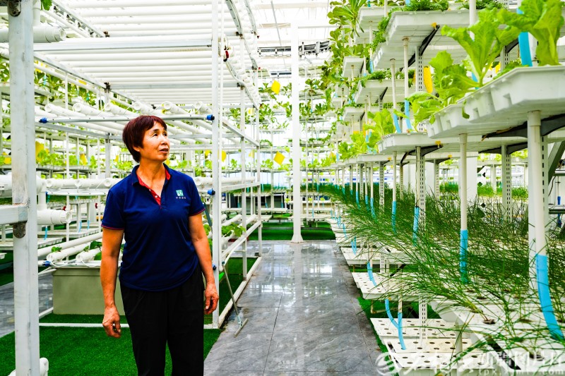 8月25日,工人在位于昌吉國家農(nóng)業(yè)高新技術(shù)產(chǎn)業(yè)示范區(qū)的新疆農(nóng)業(yè)博覽園未來農(nóng)業(yè)科技館垂直農(nóng)業(yè)展示區(qū)管理蔬菜。常誼誼攝