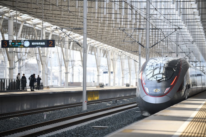 冬日暖陽(yáng),灑向延安火車站的站臺(tái)。26日10時(shí)許,“復(fù)興號(hào)”智能動(dòng)車組列車駛出站臺(tái),向著關(guān)中平原飛馳而去,縈繞在老區(qū)幾代人心中的高鐵夢(mèng)照進(jìn)現(xiàn)實(shí)。