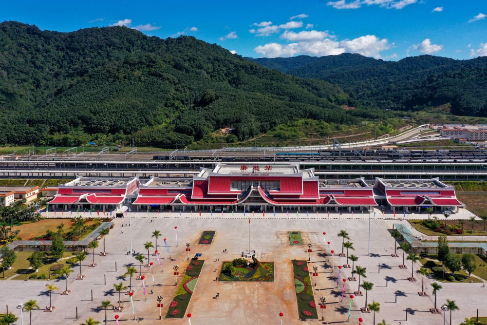 俯瞰中老鐵路磨憨站。新華社記者陳欣波 攝