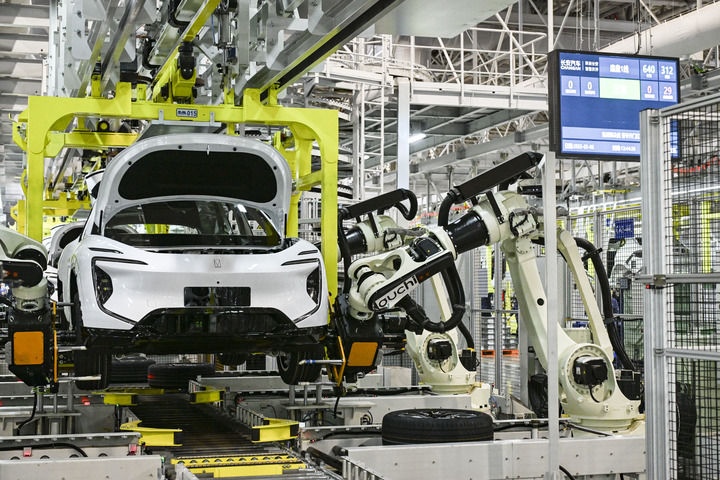 2025年3月6日在位于重慶的長安汽車數(shù)智工廠總裝車間拍攝的自動化生產(chǎn)作業(yè)現(xiàn)場。新華社記者 王全超 攝