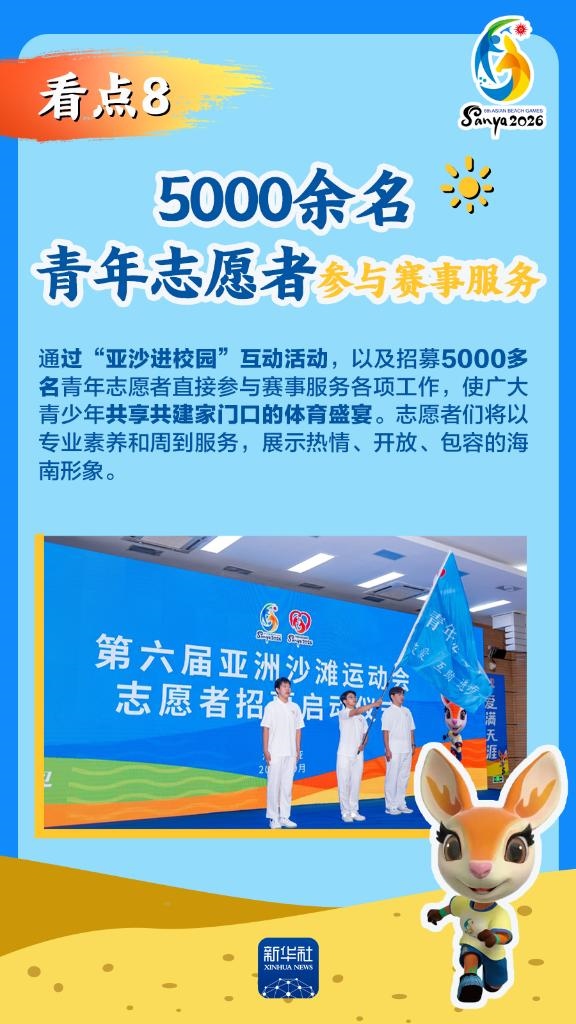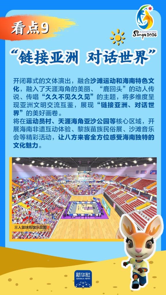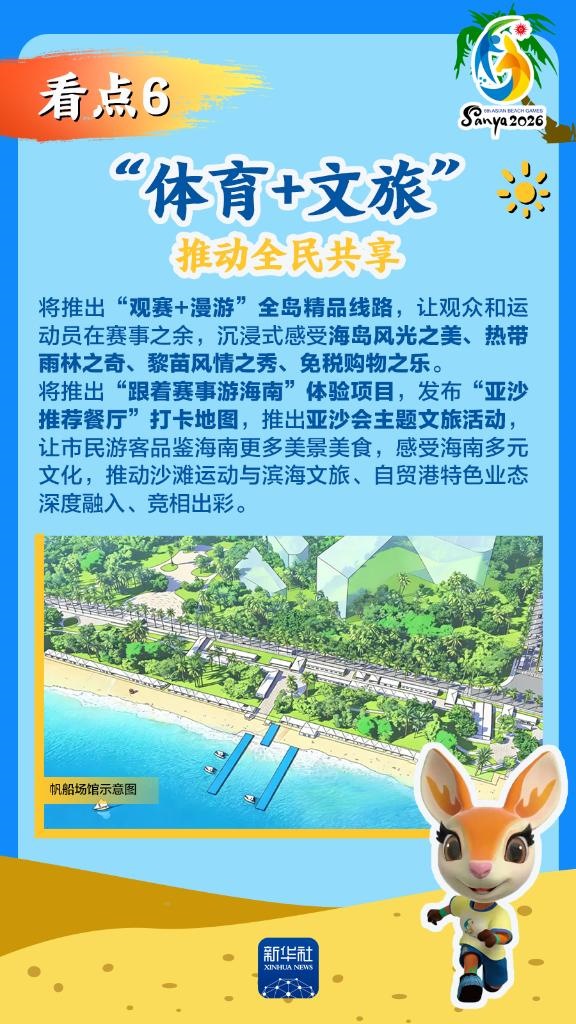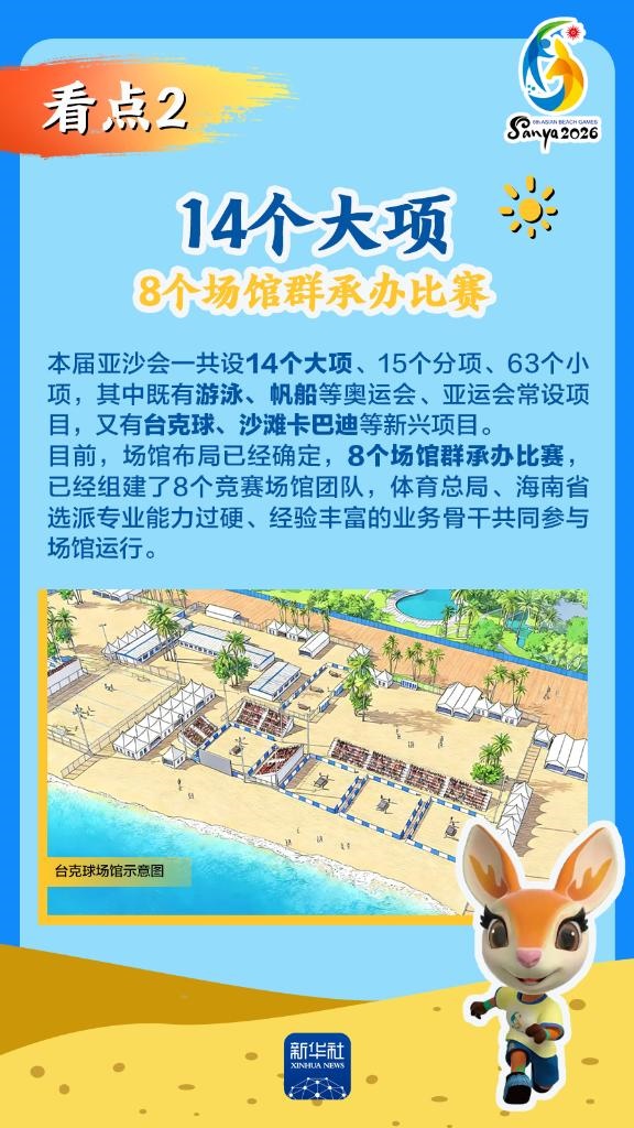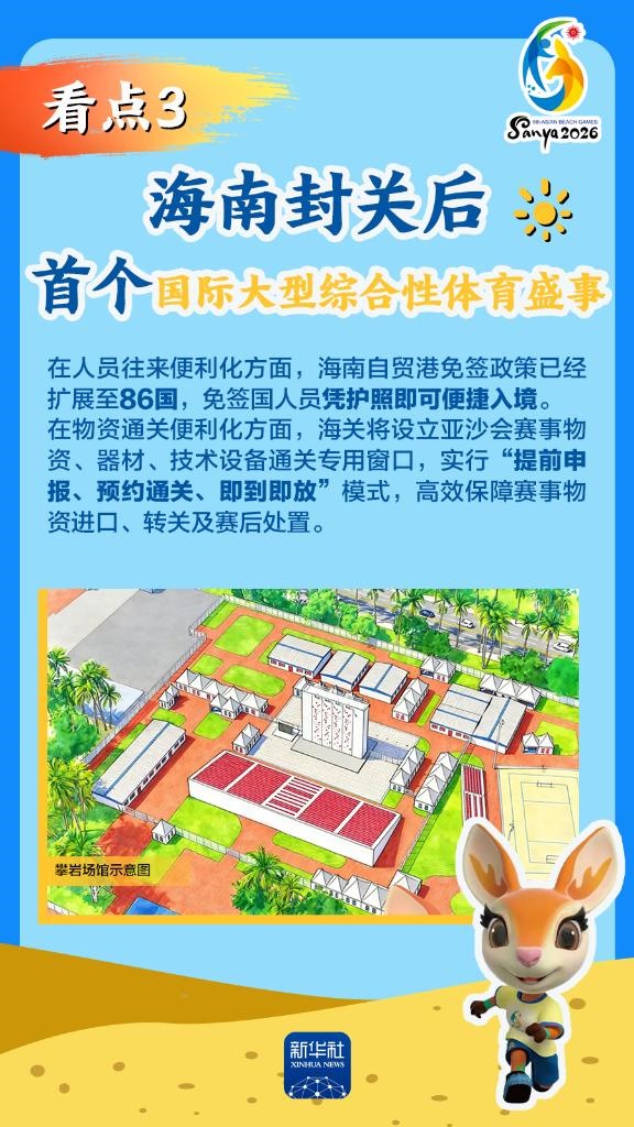 第六屆亞洲沙灘運動會(以下簡稱“亞沙會”)將于2026年4月22日至30日在海南三亞舉行,賽事歷時9天。作為海南自由貿(mào)易港封關(guān)運作后迎來的首個國際大型綜合性體育盛事,亞沙會都有哪些看點?為何值得期待?國新辦12日發(fā)布會做了詳細介紹,一起來看。