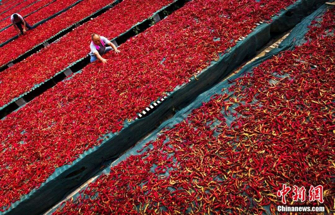 冀南平原上,連片的辣椒田如紅色海洋翻涌——細(xì)長的羊角椒緊緊扒著枝頭蕩來蕩去,油亮的皮膚曬得通紅。