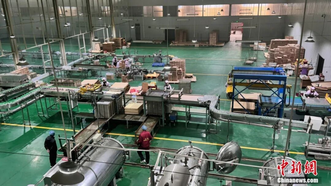 圖為雞澤縣天下紅辣椒有限公司瓶裝自動(dòng)傳輸生產(chǎn)線。 中共雞澤縣委宣傳部供圖