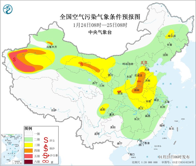 中國網(wǎng)1月23日訊 據(jù)中央氣象臺(tái)消息,23日至25日,華北中南部、黃淮中西部、汾渭平原、四川盆地等地大氣擴(kuò)散條件較差,有輕至中度霾天氣。25日,受冷空氣影響,華北中南部霾天氣減弱或消散。此外,24日至25日,受冷空氣大風(fēng)影響,西北部分地區(qū)有沙塵天氣。