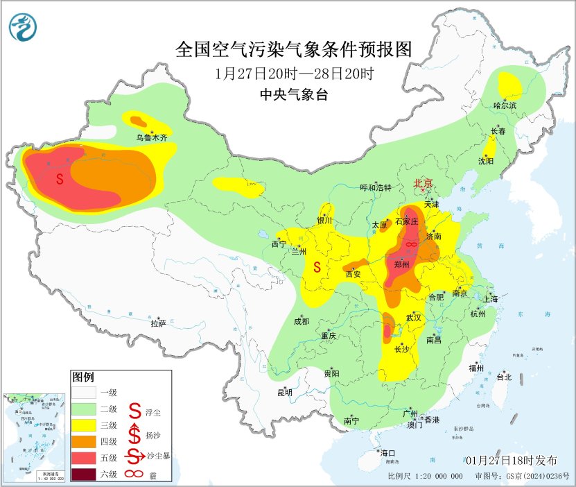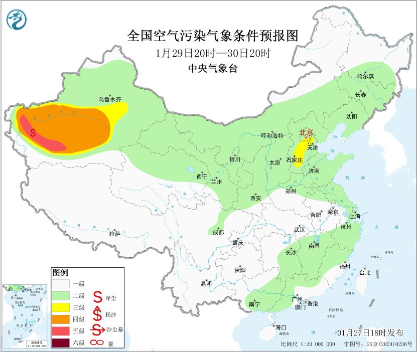 27日夜間至28日,區(qū)域大部大氣擴散條件一般,山西中南部、陜西關(guān)中等地的部分地區(qū)有輕至中度霾。29日起,受冷空氣和降水共同影響,霾天氣逐漸減弱消散。