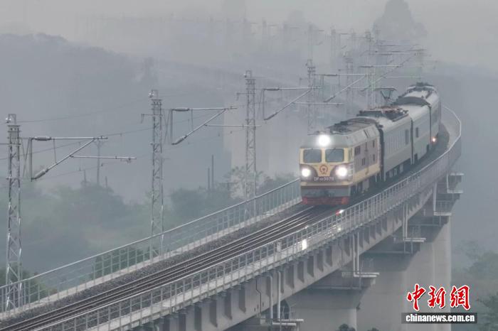 圖為2025年11月,檢測(cè)列車(chē)正在通過(guò)隆瀘敘鐵路高架橋梁段(資料圖)。蜀道鐵投集團(tuán)供圖