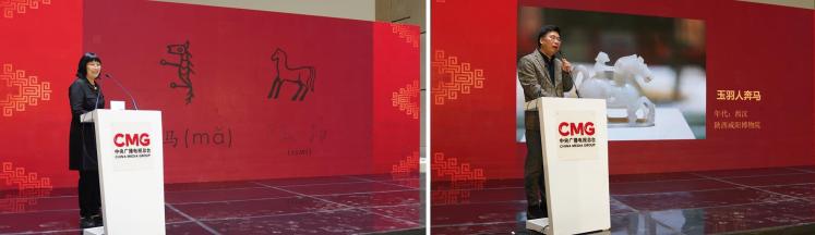 在“馬元素展示”環(huán)節(jié),北京大學(xué)、上海外國語大學(xué)的專家分別圍繞總臺(tái)春晚主標(biāo)識(shí)“騏驥馳騁”和中埃兩國博物館的豐富館藏,現(xiàn)場分享中華文明與古埃及文明中馬元素的文化意象與精神意蘊(yùn)。
