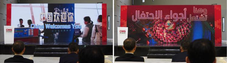 活動(dòng)現(xiàn)場播放了總臺(tái)馬年春晚、“跟著電影游中國”活動(dòng)宣傳片以及埃及文旅推介片。嘉賓們?cè)诠庥傲鬓D(zhuǎn)間,盡覽中埃兩國的壯麗風(fēng)光與璀璨文明。