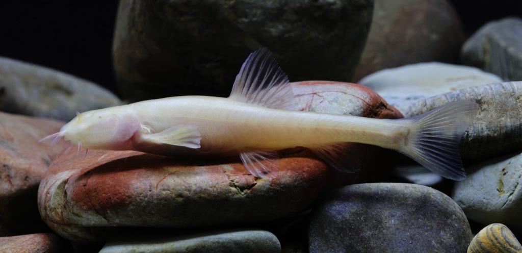 “納雍盲高原鰍”被發(fā)現(xiàn)于貴州省納雍縣張家灣鎮(zhèn)的一處地下溶洞中。作為典型的穴居魚(yú)類,該物種演化出鮮明的洞穴適應(yīng)性特征:個(gè)體體形偏小,鱗片已完全退化消失,身體呈透明淡粉色;眼睛高度退化,部分個(gè)體僅殘留細(xì)小的黑色眼點(diǎn);同時(shí),其附肢適度延長(zhǎng)、感覺(jué)系統(tǒng)發(fā)達(dá),以此適應(yīng)黑暗、封閉的地下環(huán)境。通過(guò)形態(tài)學(xué)對(duì)比與分子生物學(xué)檢測(cè)證實(shí),它被確認(rèn)為從未被記載的新種。