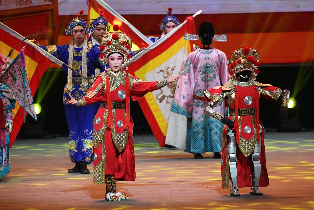 在開場節(jié)目《萬馬奔騰》中,20臺機械臂與26臺雙臂機器人齊揮鼓槌,激昂鼓聲奏出奮進節(jié)拍。